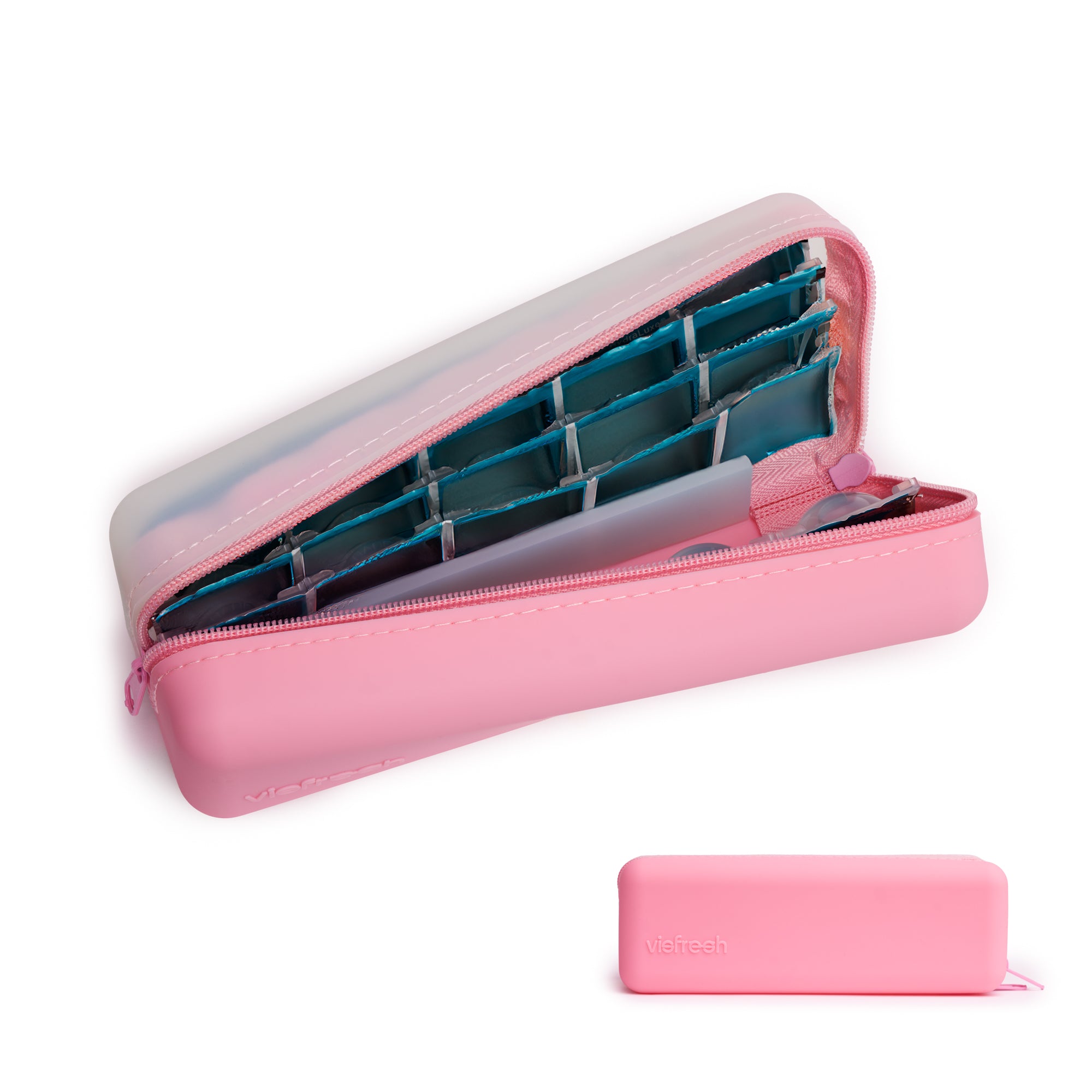 Neatly organizes daily lenses, replacing flimsy zip bags and bulky containers.
